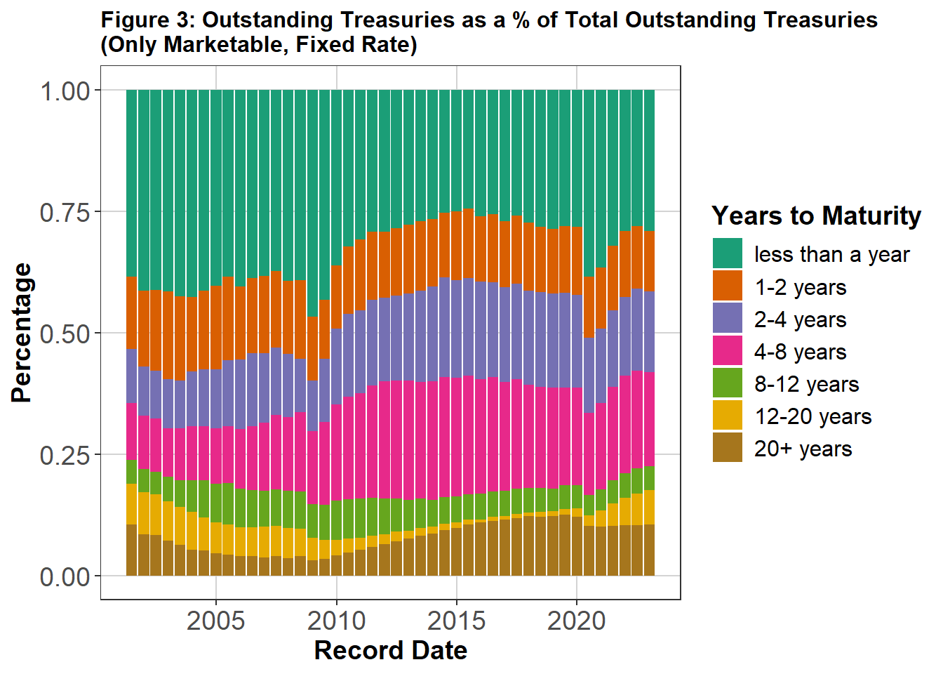 Figure 3 depicts the percentage of Treasury securities by their maturities.
